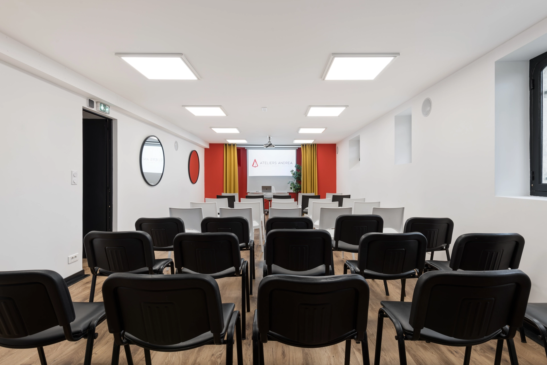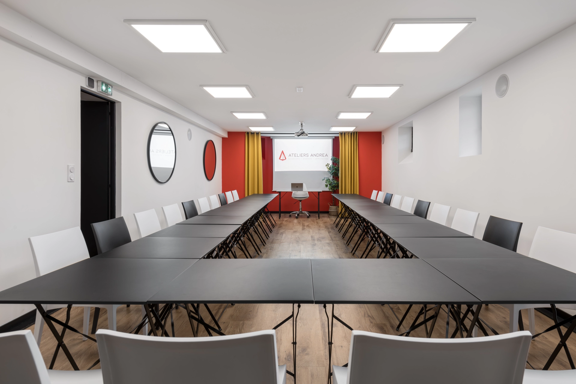 Vous souhaitez organiser un événement à plus grande envergure ou pouvoir disposer de plus d’espace pour vos collaborateurs ou vos invités, nous pouvons vous mettre à disposition exclusive les Ateliers Andréa avec ses deux salles communicantes, le vestiaire et les sanitaires. Vous pourrez ainsi bénéficier d’un plateau de 145 m² et de sa terrasse extérieure pour votre séminaire, formation ou évènement privé.